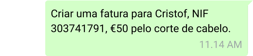 Crie e envie faturas para a Autoridade Tributária (AT) em segundos — através da web, da app ou do WhatsApp (por voz ou texto).